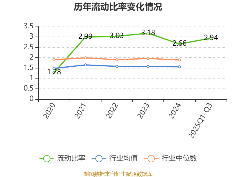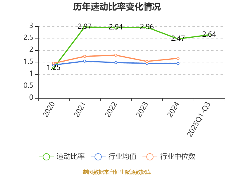 2025年前三季度,公司流动比率为2.94,速动比率为2.64。