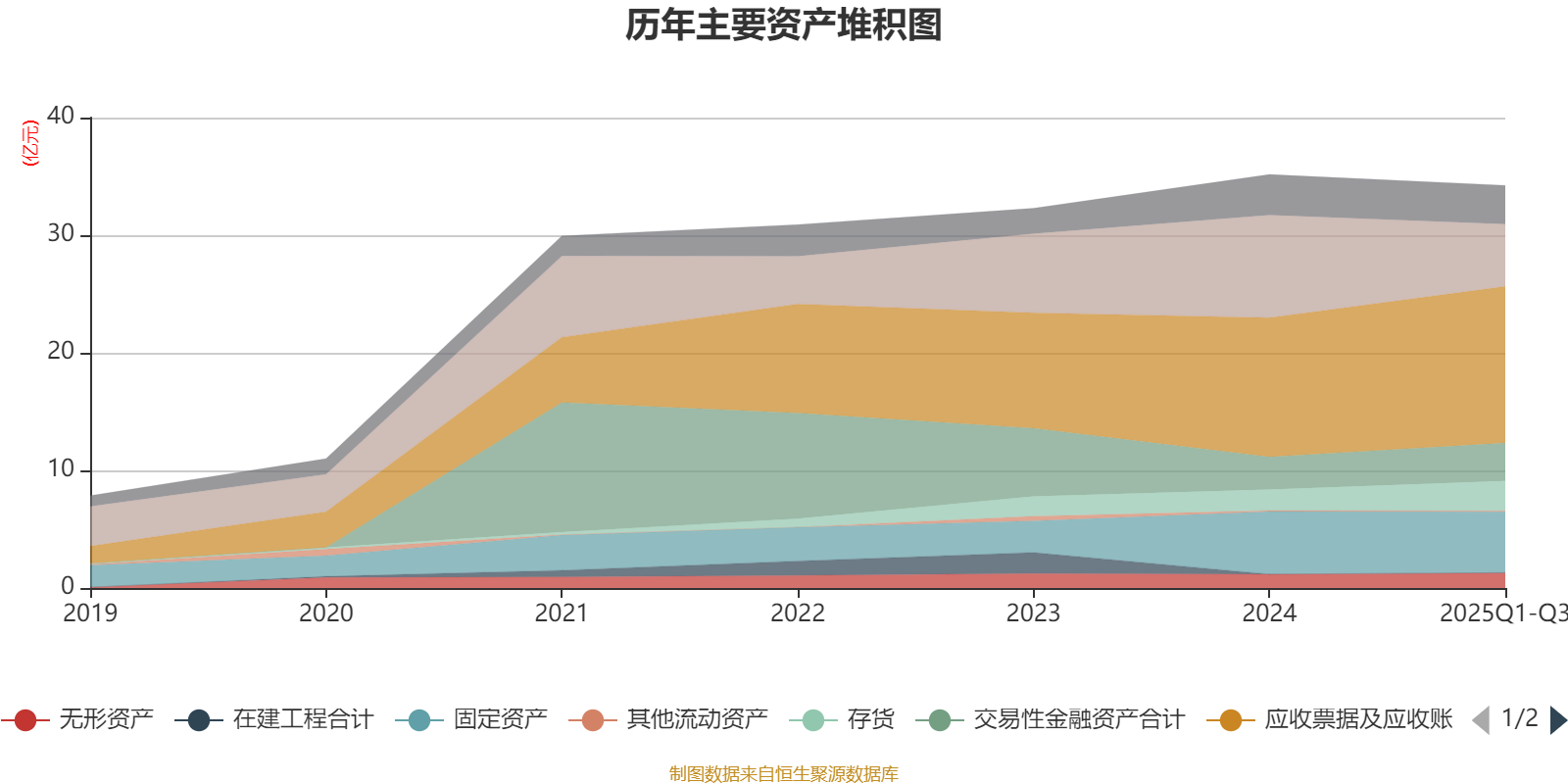 资产重大变化方面,截至2025年三季度末,公司货币资金较上年末减少39.28%,占公司总资产比重下降9.35个百分点;应收票据及应收账款较上年末增加12.42%,占公司总资产比重上升5.2个百分点;存货较上年末增加43.06%,占公司总资产比重上升2.39个百分点;交易性金融资产合计较上年末增加16.29%,占公司总资产比重上升1.53个百分点。