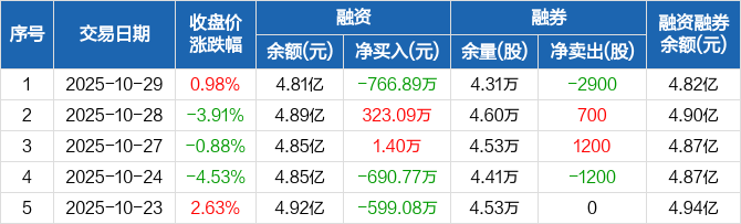深城交:融资净偿还766.89万元,融资余额4.81亿元(10-29)