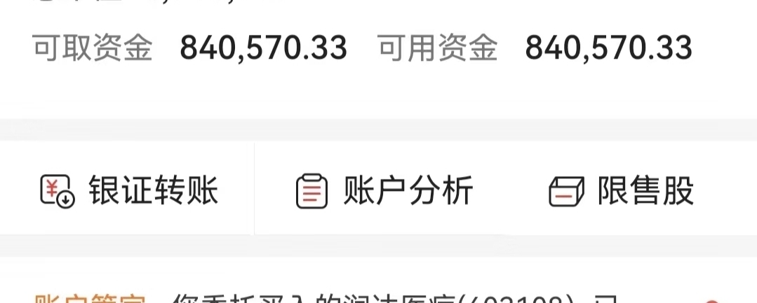 尾盘中银账户减仓80万出来,同花顺深狗被套80万,华泰400个账户盈利170个长