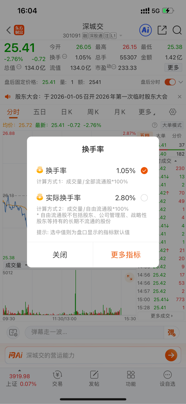 $深城交(SZ301091)$ 这种换手率和实际换手率长期差两三倍的,基本都是在阴跌出货