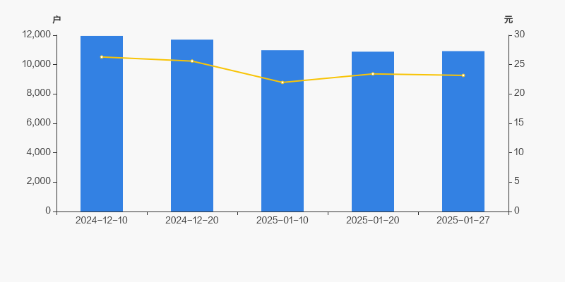 2024年12月10日至今,公司股东户数有所下降,区间跌幅为8.66%。2024年12月10日至2025年1月27日区间股价下降11.90%。