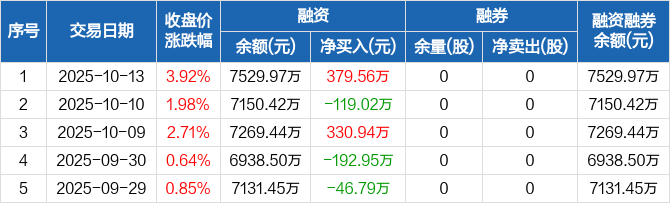争光股份:融资净买入379.56万元,融资余额7529.97万元(10-13)