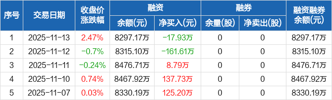 争光股份:融资净偿还17.93万元,融资余额8297.17万元(11-13)