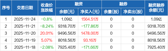 争光股份:融资余额1.09亿元,创历史新高(11-24)