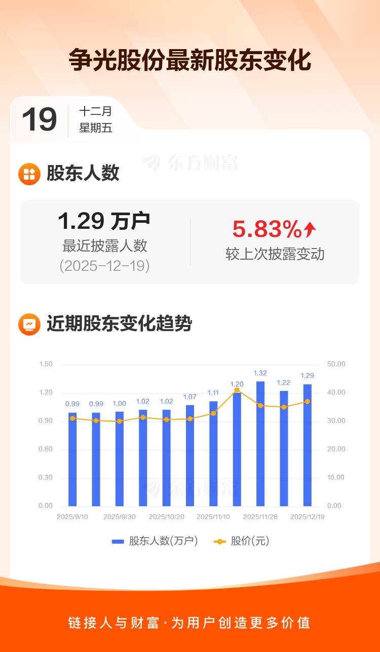 争光股份:截至12月19日最新股东户数1.29万户,较上期增加5.83%