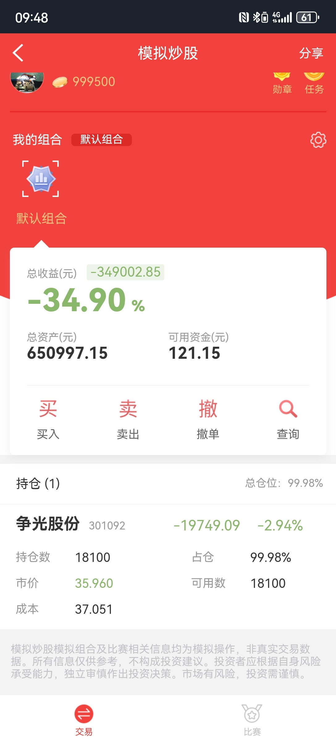 $争光股份(SZ301092)$ 尊敬的吴总,请问输光股份业绩是不是出现问题了,连我一个模拟盘都输的很彻底。