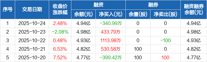 华兰股份:融资净偿还340.99万元,融资余额4.94亿元(10-24)