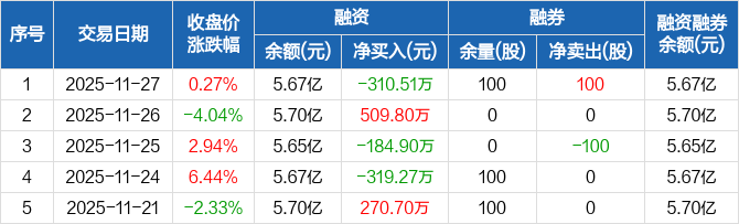 华兰股份:融资净偿还310.51万元,融资余额5.67亿元(11-27)