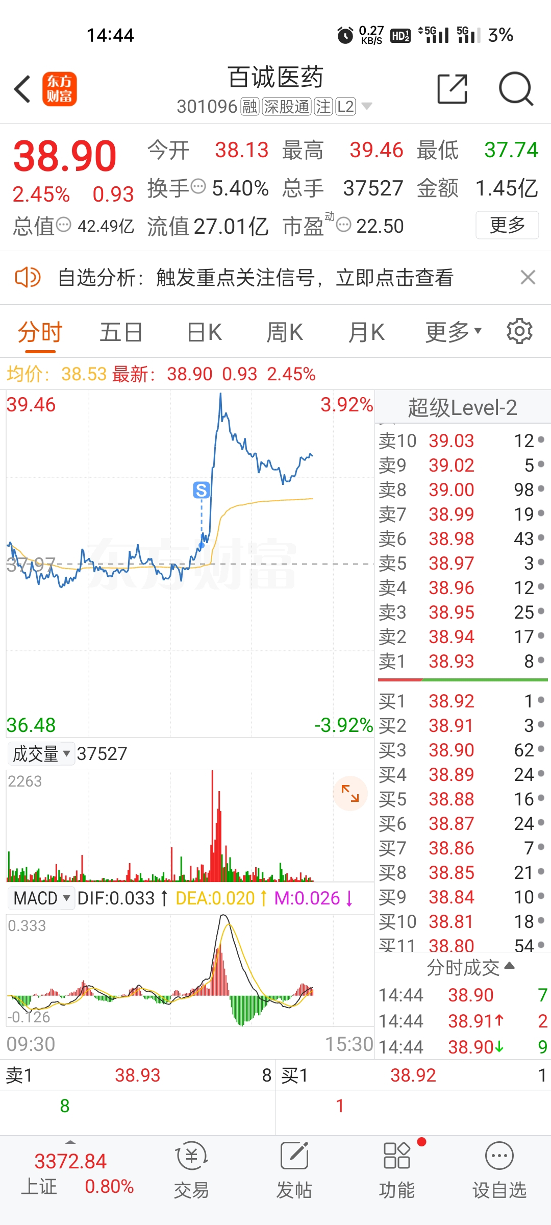 $百诚医药(SZ301096)$ 主力三起三落成功把我甩下去了赚了一包芙蓉王还好没亏