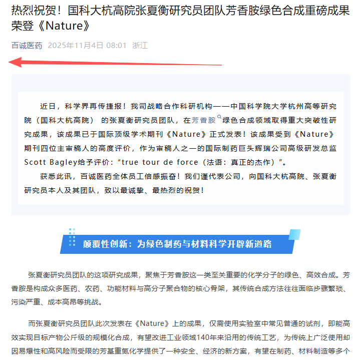 百诚医药全体员工倍感振奋!我们谨代表公司,向国科大杭高院、张夏衡研究员本人及其团队,致以最诚挚、最热烈的祝贺!
