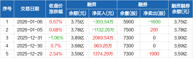 百诚医药:融资净偿还303.54万元,融资余额3.75亿元(01-06)