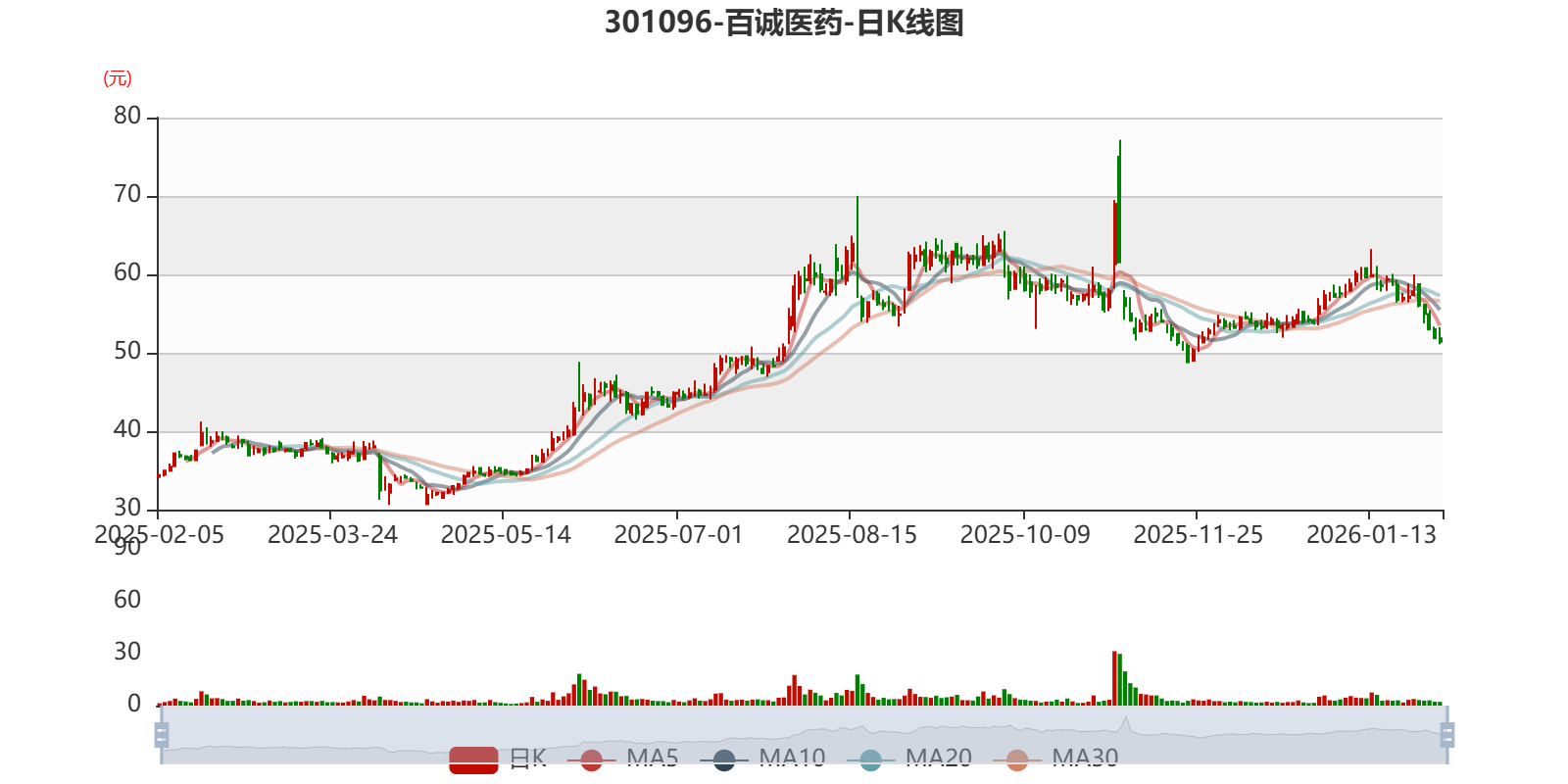 中证智能财讯百诚医药(301096)1月30日晚间披露2025年度业绩预告,预计2025年归母净利润亏损6600万元至9600万元,上年同期亏损5274.28万元;扣非净利润亏损7900万元至1.1亿元,上年同期亏损7263.18万元。以最新收盘价计算,市净率(LF)约2.17倍,市销率(TTM)约9.51倍。