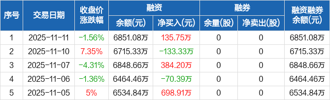 天益医疗:融资净买入135.75万元,融资余额6851.08万元(11-11)