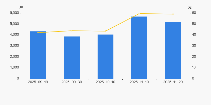2025年9月19日至今,公司股东户数显著增长,区间涨幅为20.04%。2025年9月19日至2025年11月20日区间股价上涨40.49%。