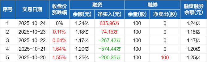 金埔园林:融资净买入635.86万元,融资余额1.24亿元(10-24)