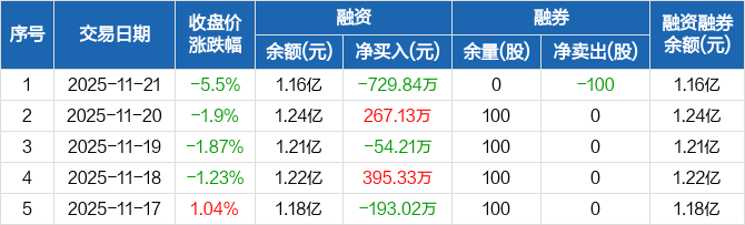 金埔园林:融资净偿还729.84万元,融资余额1.16亿元(11-21)