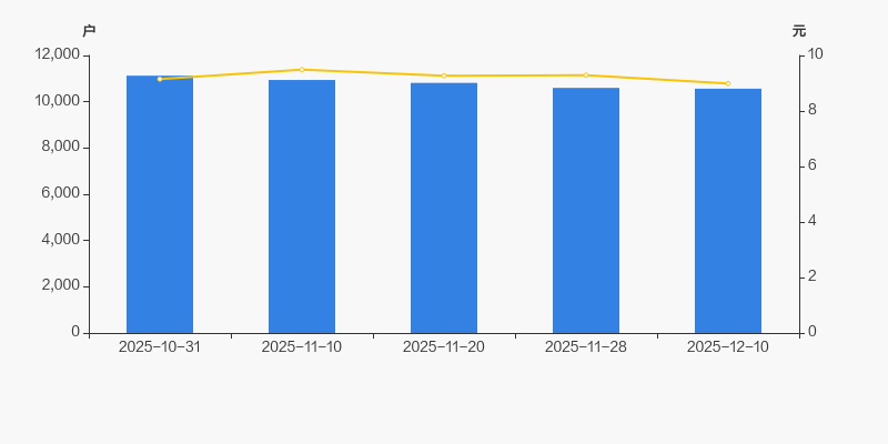 自2025年10月31日以来,公司股东户数连续4期下降,截至目前减幅为5.05%。2025年10月31日至2025年12月10日区间股价下降1.75%。