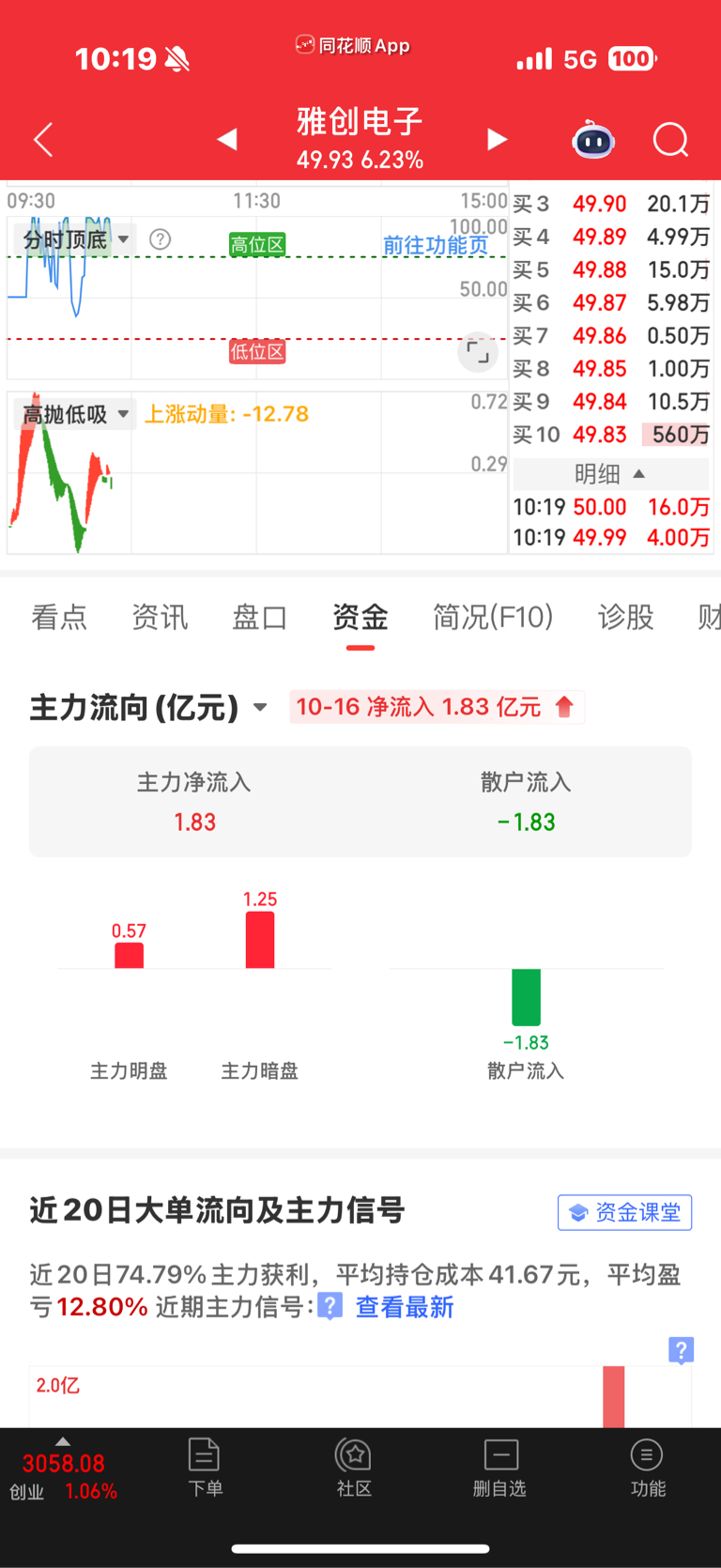 $雅创电子(SZ301099)$ 边洗边拉,快流入2亿了