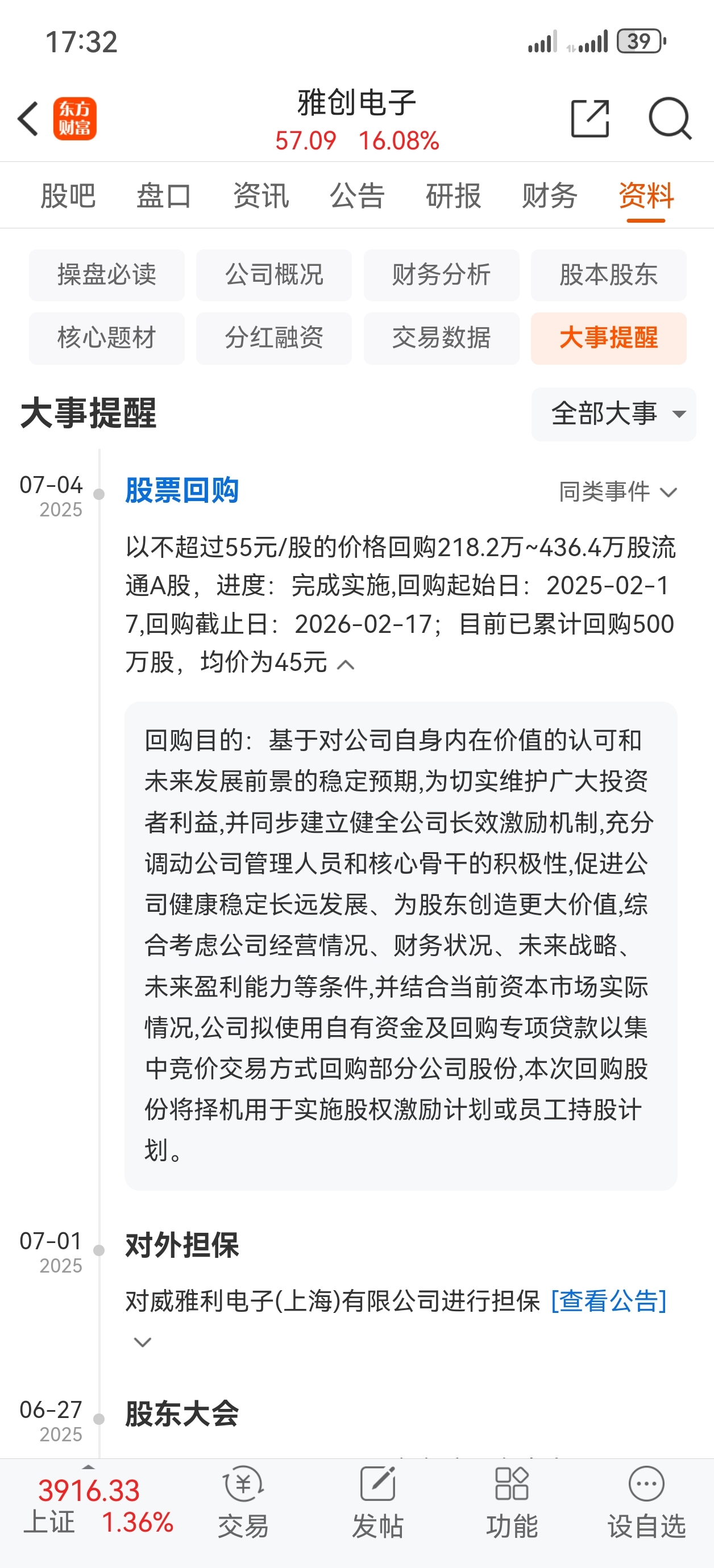 $雅创电子(SZ301099)$ 七月份大股东以45元的高价回购了500万股作为股权激励。可见公司对这个股票是极度看好的。