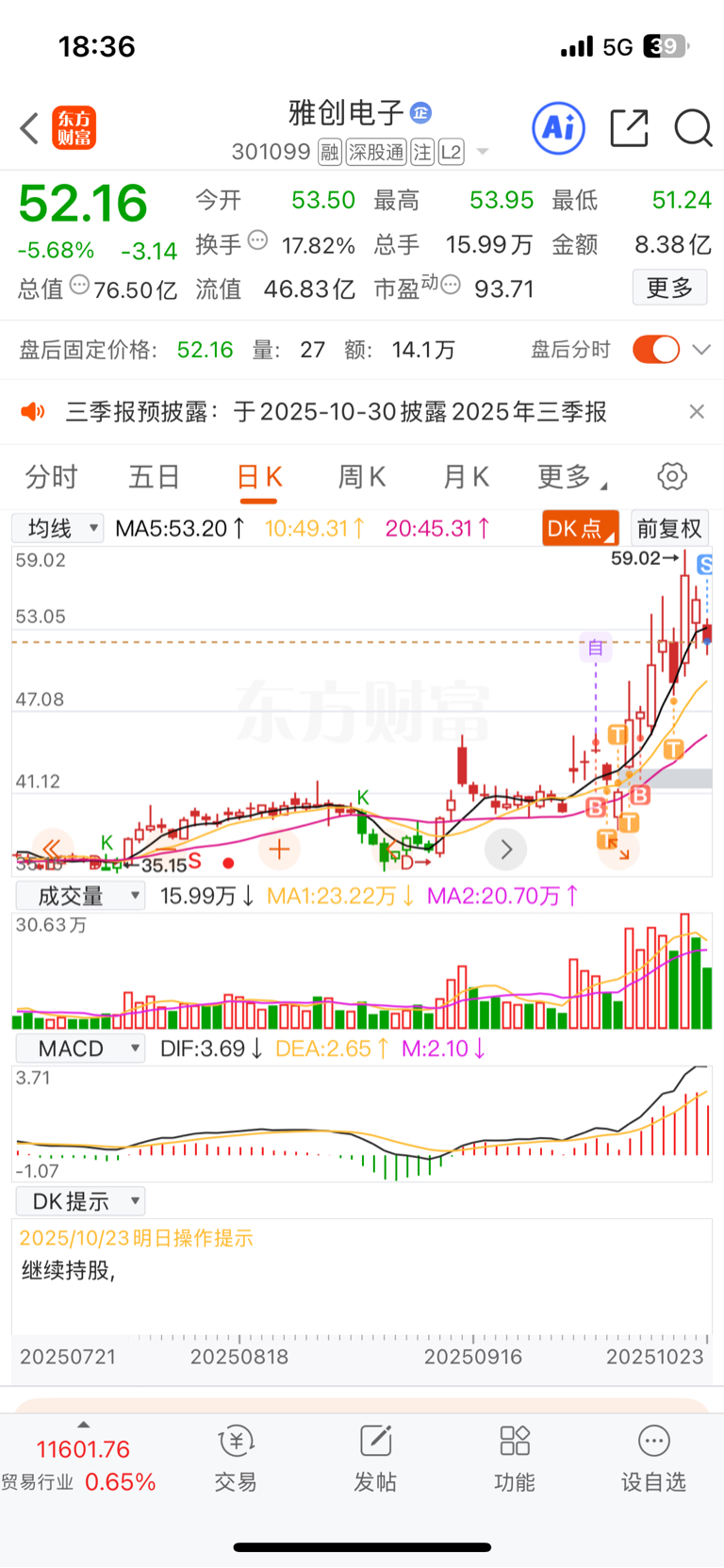 $雅创电子(SZ301099)$ 跑了希望明天高开高走给兄弟们多吃肉