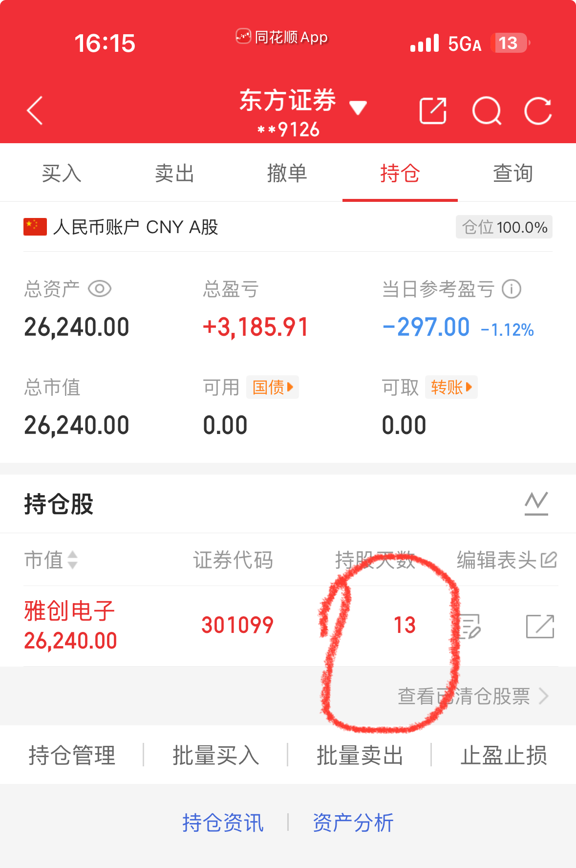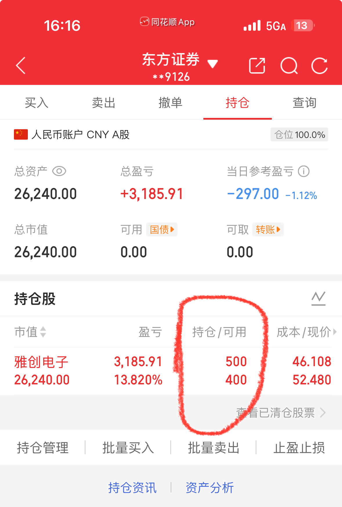 所有的小韭菜的骨神,我今天又加仓了100股,而且是没有加到最低点,在下午2:00