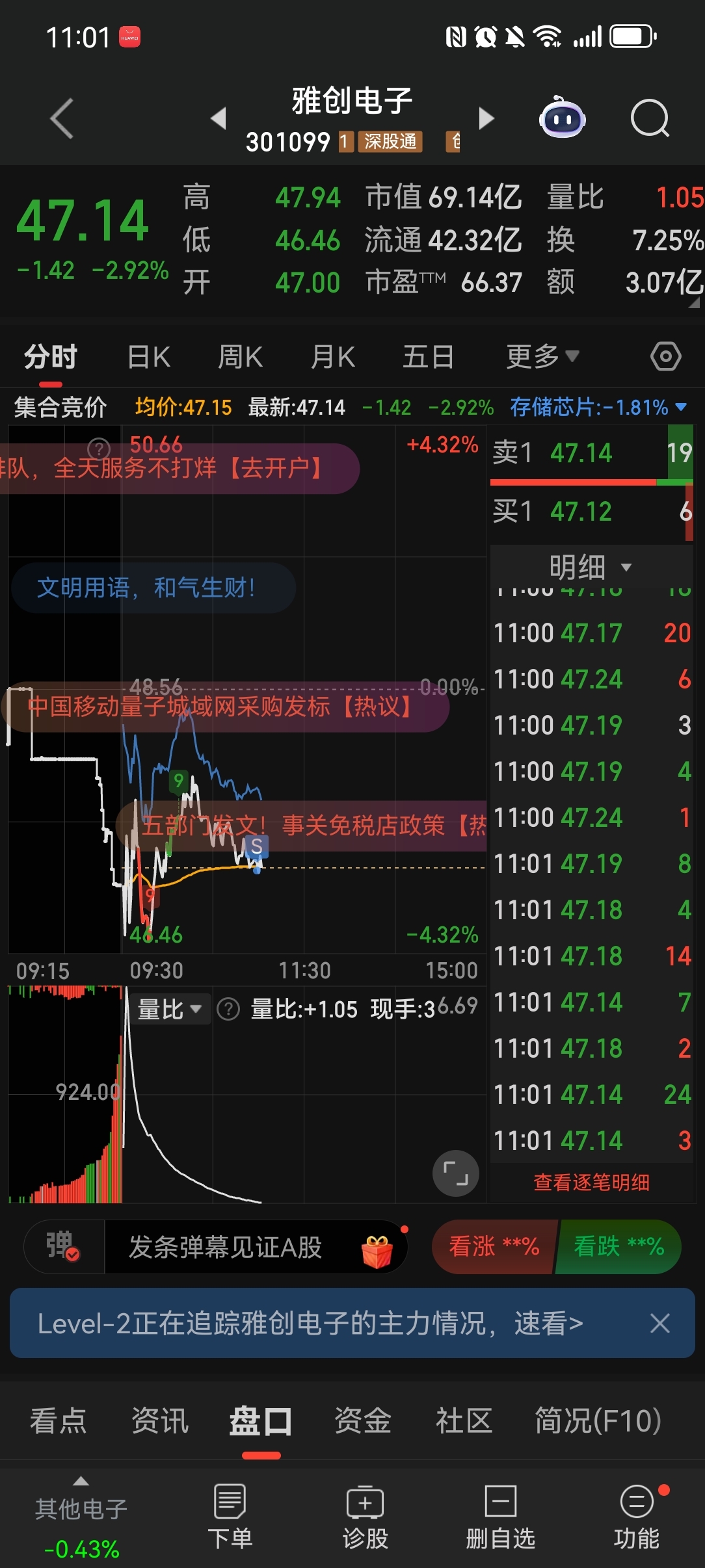 $雅创电子(SZ301099)$  留下的二千股也割肉出局一股不剩了