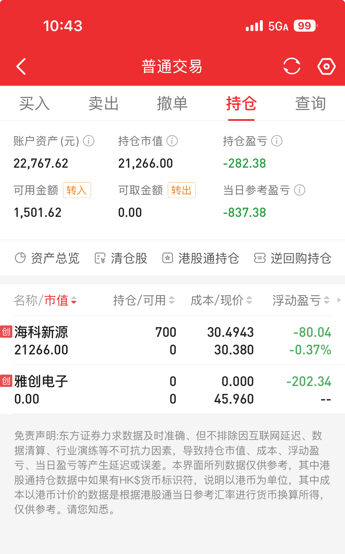 兄弟们大哥,我已经割肉了,亏200离场,然后我已经超底了,海科新园今天最少红10