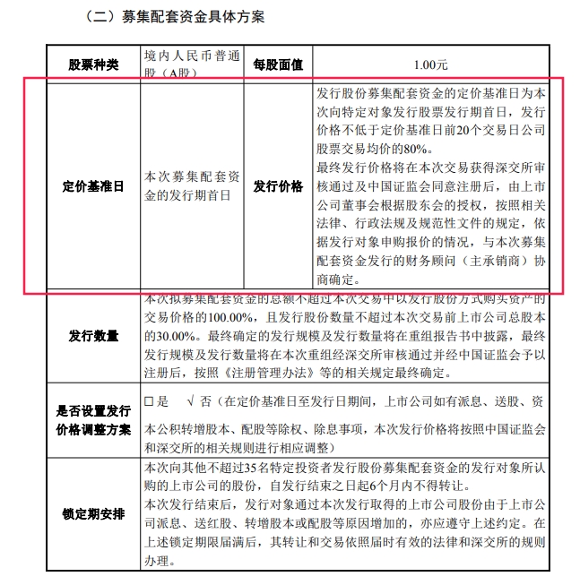 发行股份购买资产的那部分定增价格是定了,但是募集配套资金的这部分还没定,定价基准