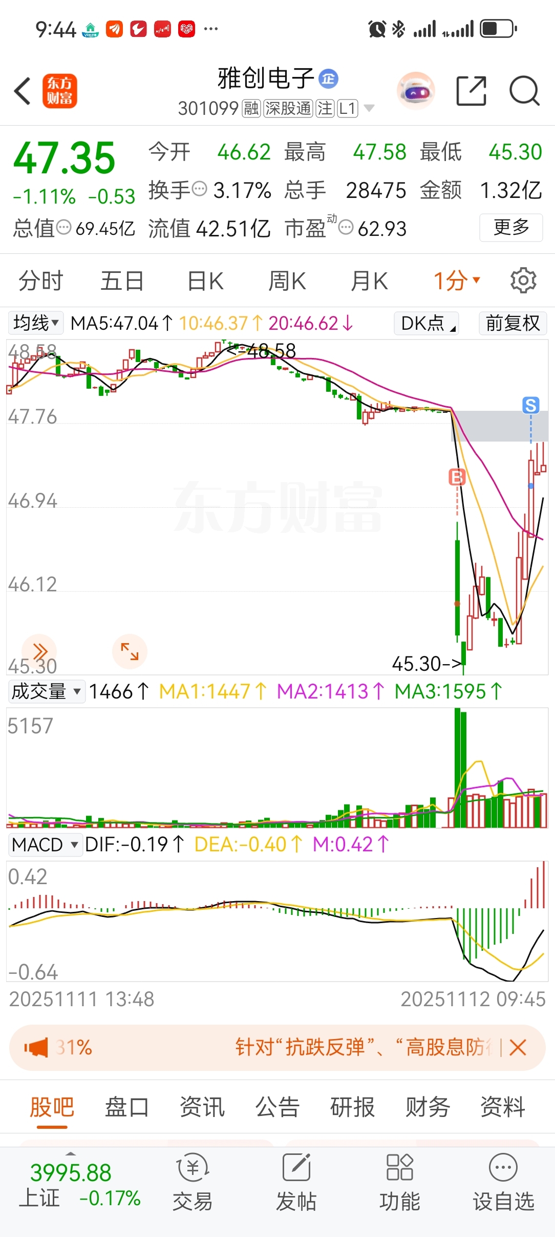 $雅创电子(SZ301099)$ 又要做T降成本,今天进多好,昨天手欠