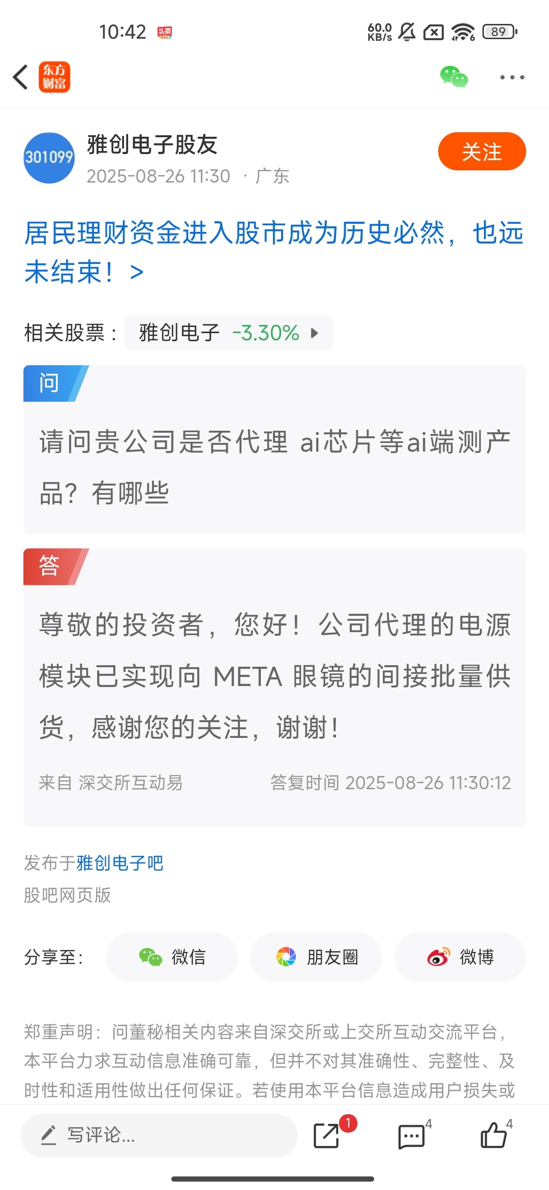 $雅创电子(SZ301099)$ meta眼镜爆单都没带带你呀