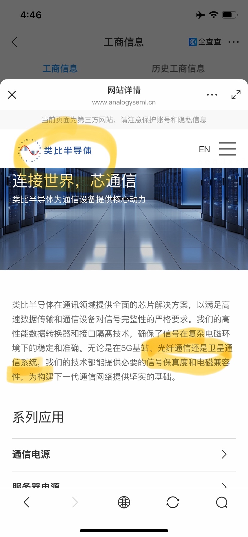 $雅创电子(SZ301099)$ 控股子公司类比半导体,官网明确有卫星通信芯片
