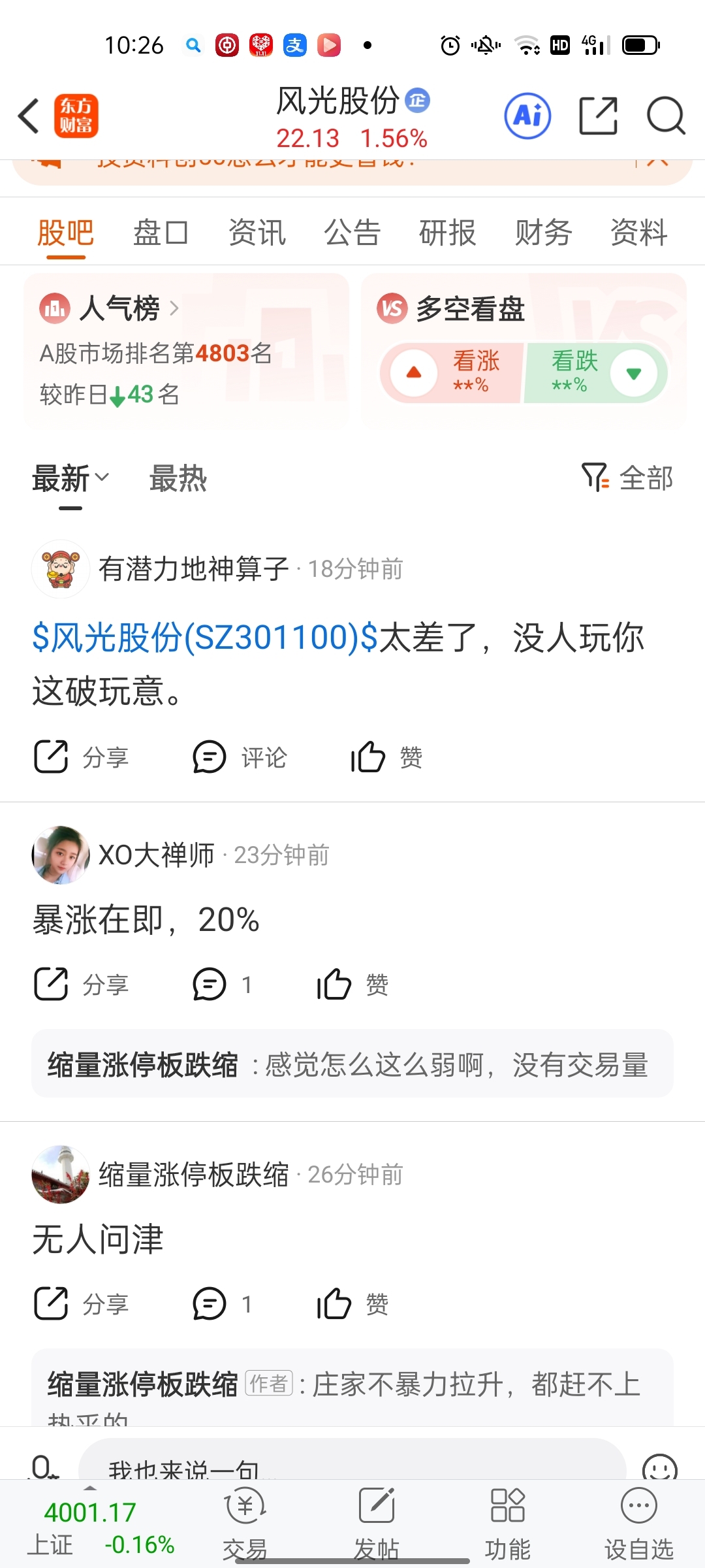 温馨提示: 1.根据《证券法》规定,禁止编造、传播虚假信息或者误导性信息,扰乱证券市场;2.用户在本社区发表的所有资料、言论等仅代表个人观点,与本网站立场无关,不对您构成任何投资建议。用户应基于自己的独立判断,自行决定证券投资并承担相应风险。《东方财富社区管理规定》