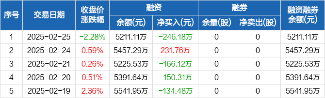 兆讯传媒:融资净偿还246.18万元,融资余额5211.11万元(02-25)
