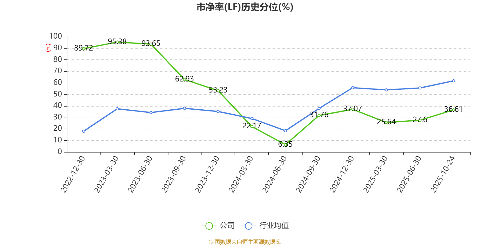 市盈率、市净率为负时,不显示当期分位数,会导致折线图中断。
