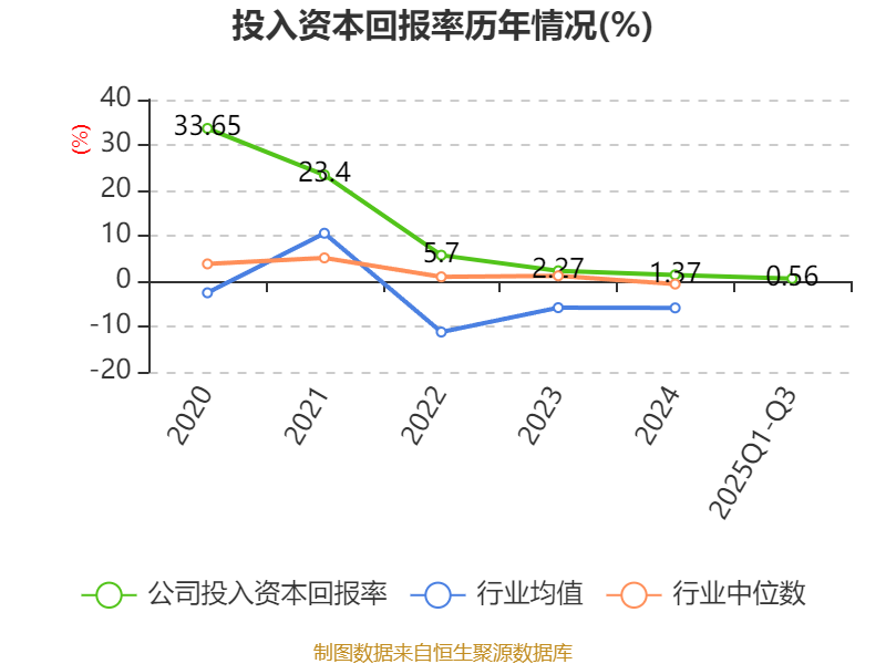 盈利能力方面, 2025年前三季度公司加权平均净资产收益率为1.1%,同比下降1.12个百分点。公司2025年前三季度投入资本回报率为0.56%,较上年同期下降0.66个百分点。
