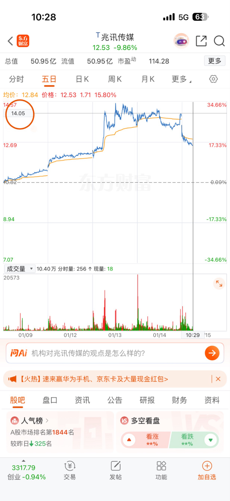 $兆讯传媒(SZ301102)$ 14号昨天,无论它自己盘中,还是大盘政策性利空,结合前几日狂拉30%,短线已经给了这么明确的信号,都不走?