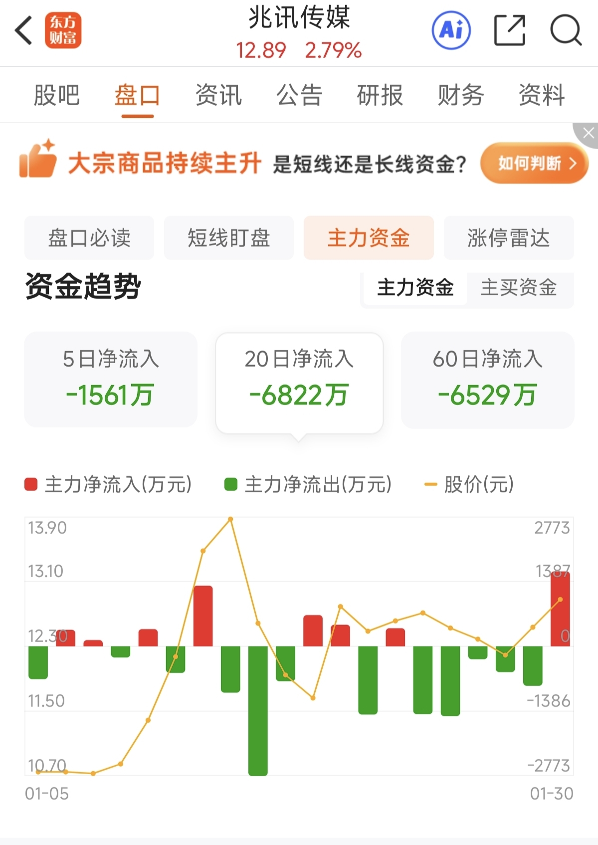 $兆讯传媒(SZ301102)$ 今天竟然是20日内主力资金流入最大的一天,今天吃爽了?