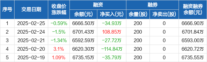 何氏眼科:融资净偿还34.93万元,融资余额6666.5万元(02-25)