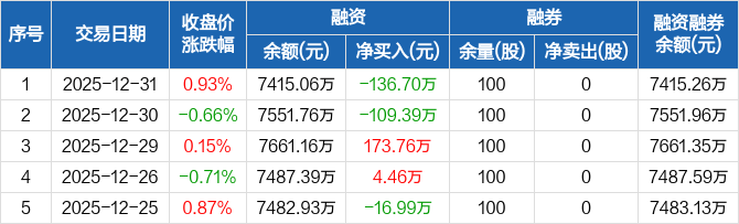 何氏眼科:融资净偿还136.7万元,融资余额7415.06万元(12-31)