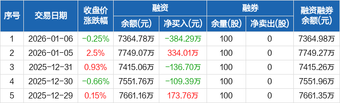 何氏眼科:融资净偿还384.29万元,融资余额7364.78万元(01-06)