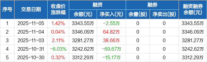 鸿铭股份:融资净偿还2.55万元,融资余额3343.55万元(11-05)