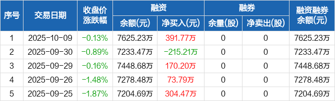 骏成科技:融资净买入391.77万元,融资余额7625.23万元(10-09)