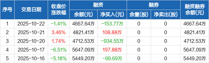 瑜欣电子:融资净偿还153.77万元,融资余额4667.64万元(10-22)