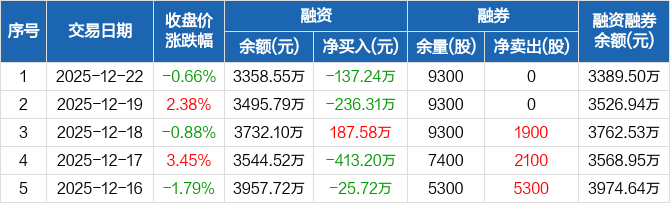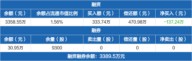 洁雅股份:融资净偿还137.24万元,融资余额3358.55万元(12-22)
