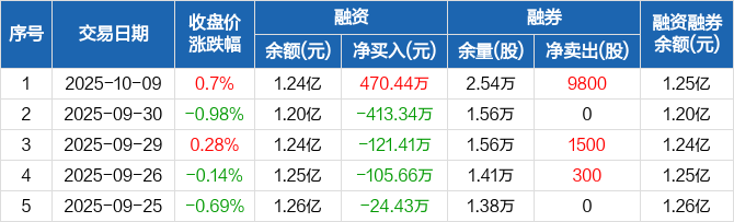 军信股份:融资净买入470.44万元,融资余额1.24亿元(10-09)