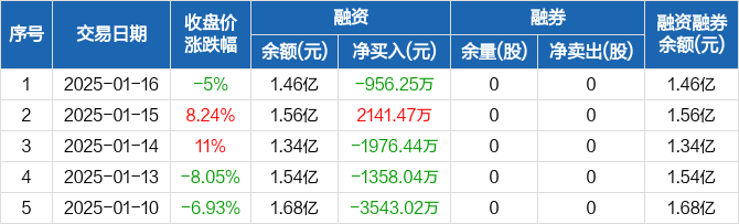 青木科技:融资净偿还956.25万元,融资余额1.46亿元(01-16)