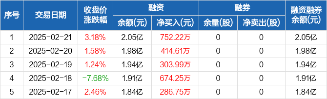 青木科技:融资余额2.05亿元,创历史新高(02-21)