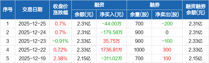 青木科技:融资净偿还44万元,融资余额2.31亿元(12-25)