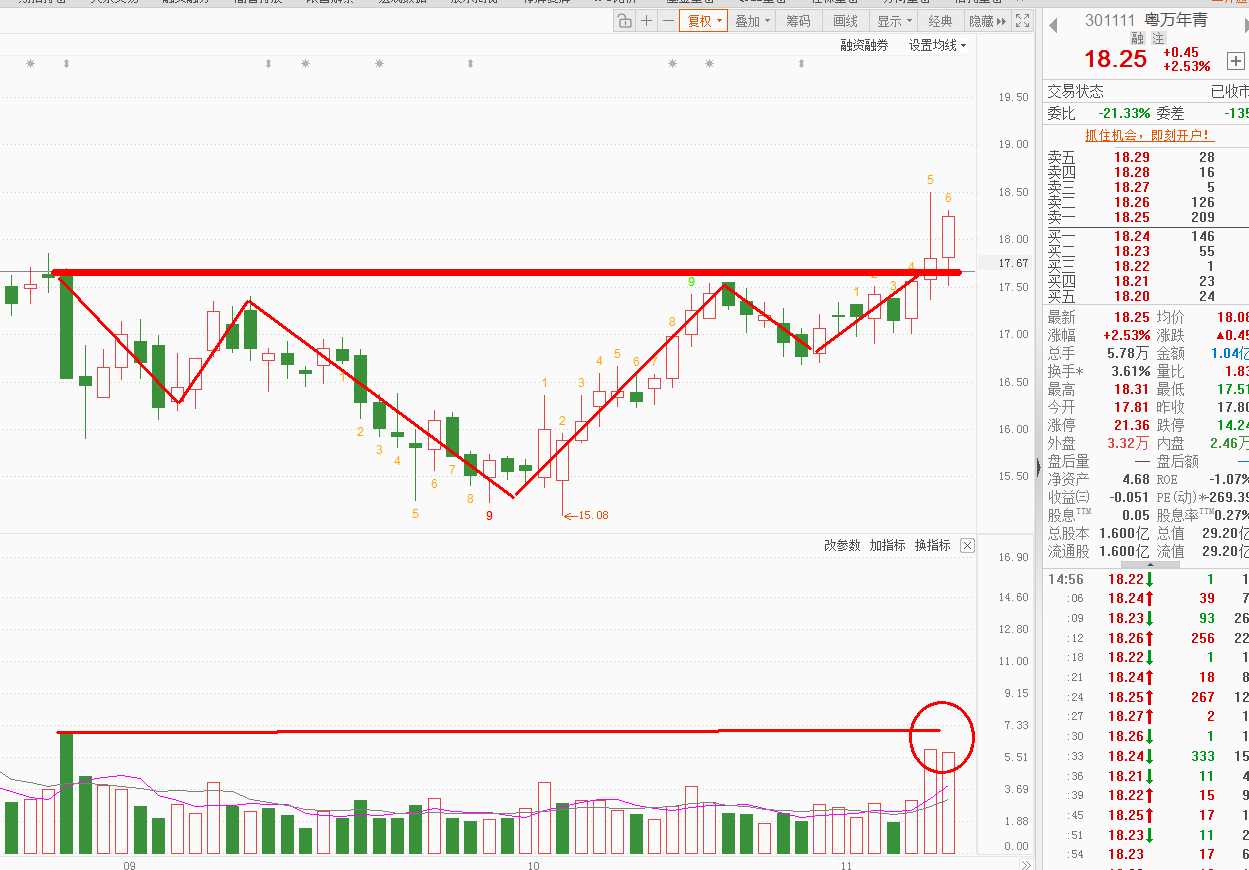 老师教的不知道我画得对不对,昨日高量上影线今天实体突破,是上车机会吗?有哪位高手师傅指点一下!感谢!!